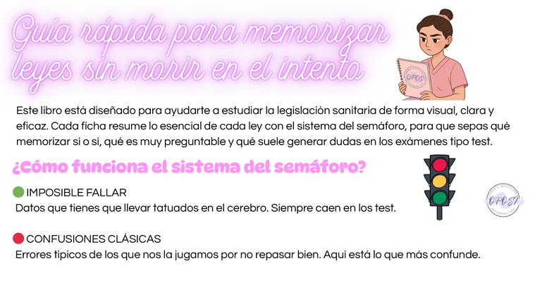 Un libro impreso en formato A5, claro y súper resumido, con conceptos clave, esquemas visuales y fichas rápidas de las leyes sanitarias. Perfecto para repasar en cualquier momento y llegar al examen con más seguridad y menos nervios. Envío gratis incluido.