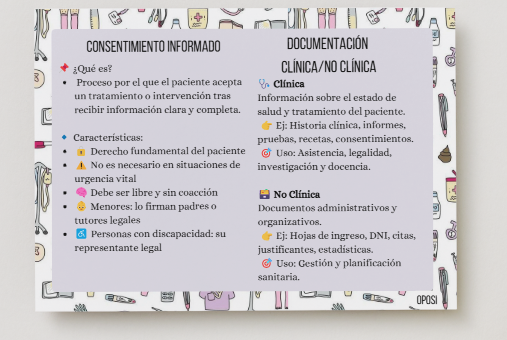Pequeñas fichas de repaso 📇 diseñadas para ayudarte a memorizar lo esencial del temario específico de TCAE 🏥 de forma rápida, clara y eficaz.