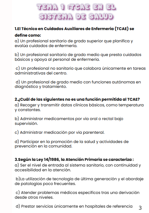 💙 Un recurso completo, práctico y actualizado para preparar tus oposiciones o repasar tus conocimientos de TCAE de forma eficaz y organizada.